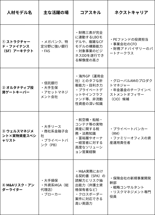 信託銀行では、海外のプライベートデット(PD)ファンドを日本の投資家ニーズに合わせて組成・販売するゲートキーパー機能を強化してきているところも出てきており、これに伴い、海外GPの選定や商品開発ができる専門人材のニーズが高まっています。